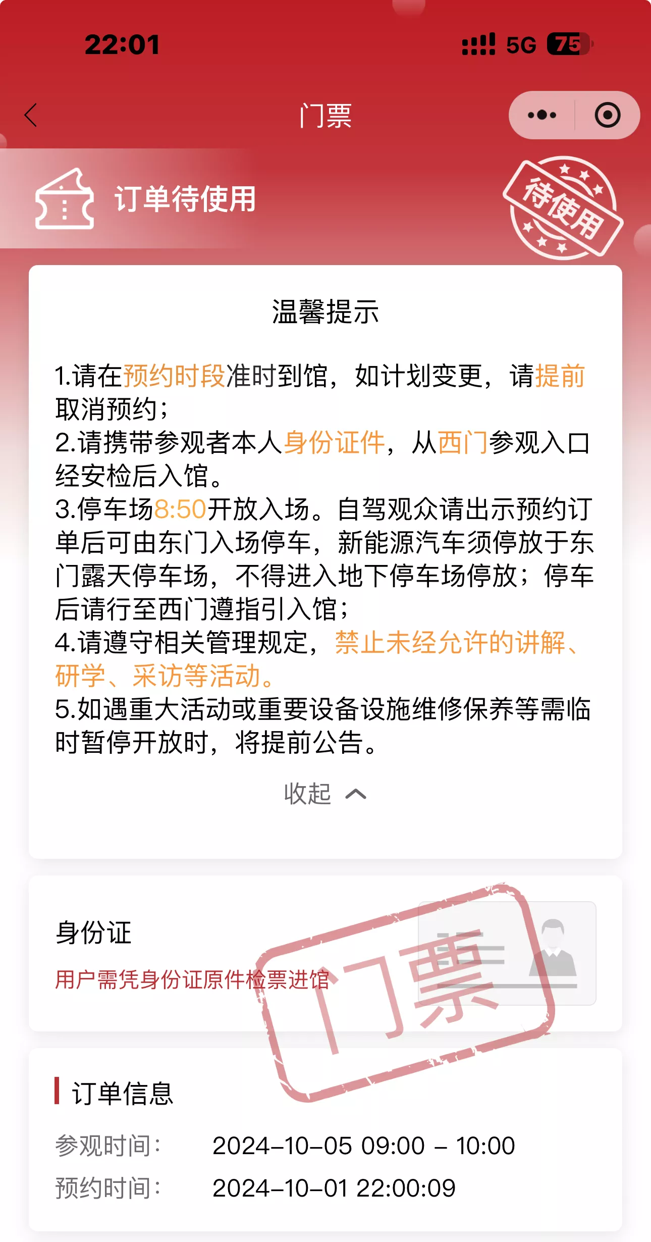 9 月 25 号,我成功预约了 10 月 2 号的票!