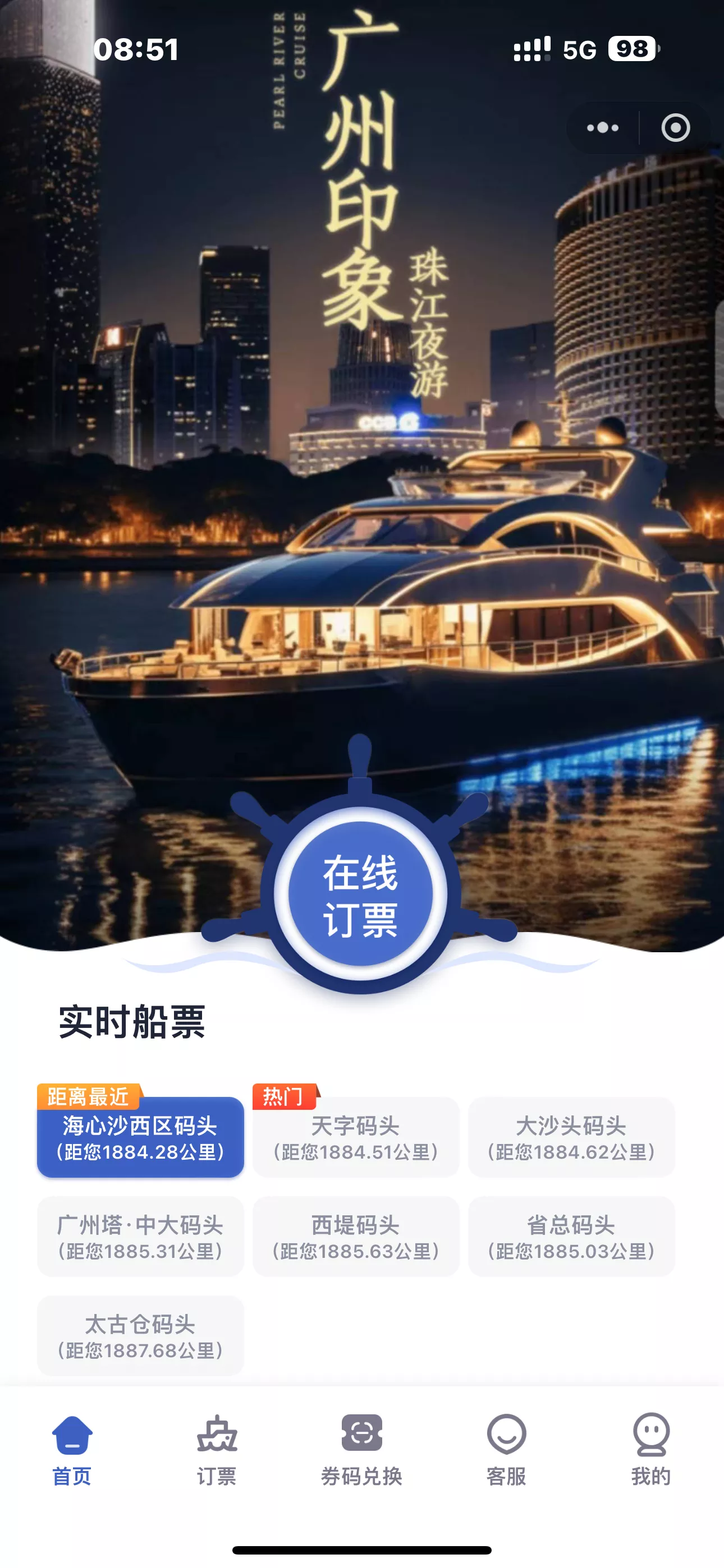 小程序订票成功后会给你发送短信,点击短信里面的链接进入网页会让你填写登船用户信息,填写好了后会给每个游客生成一个二维码,保存这个二维码截图,这个二维码 + 身份证用于登船。