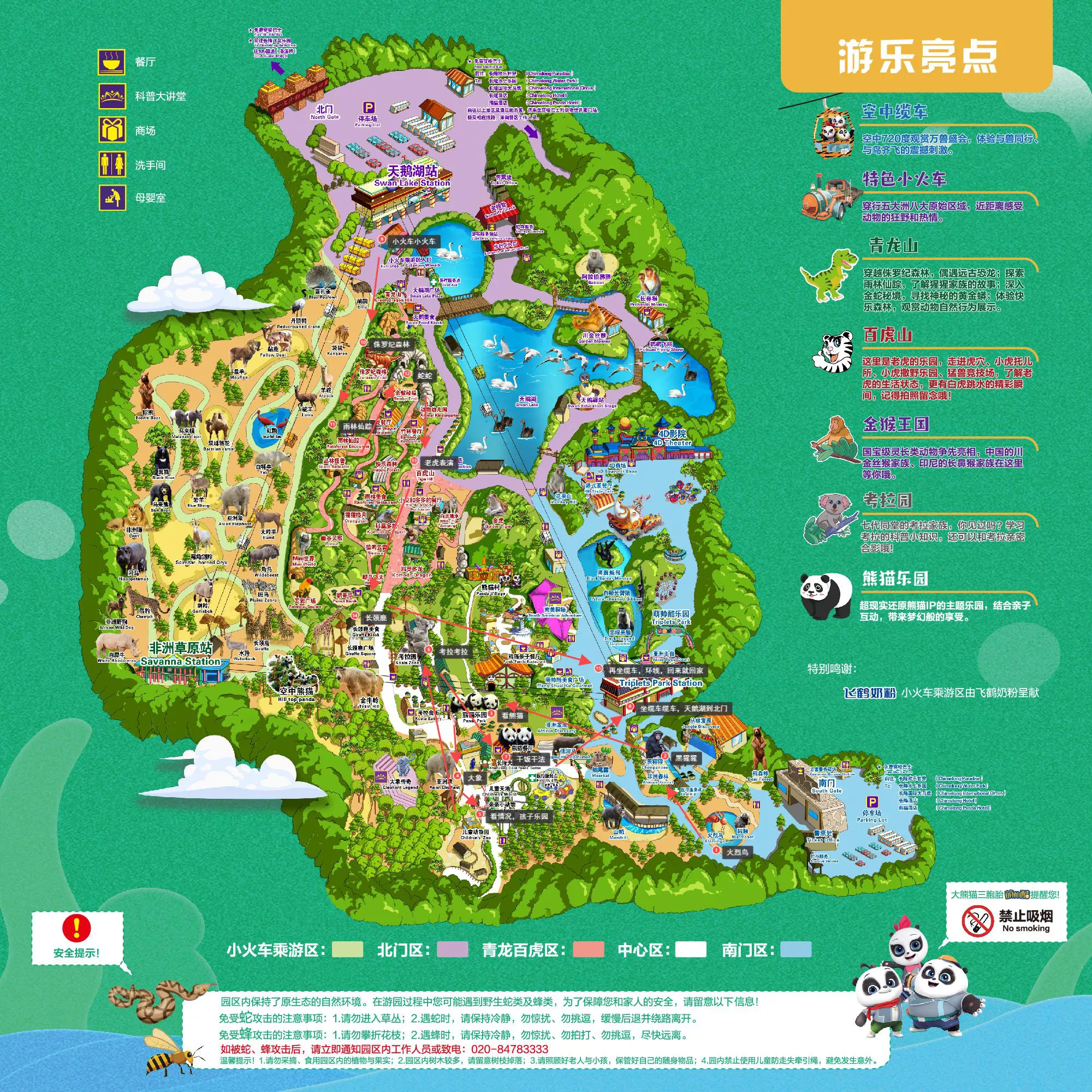 ——> 熊猫乐园站坐缆车,选择天鹅湖站(透明底),直接到了北门