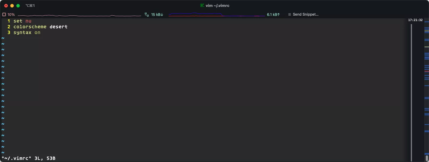 默认情况下,Mac 上的 vim 命令是没有颜色高亮的。但是它是有颜色配置文件的。在