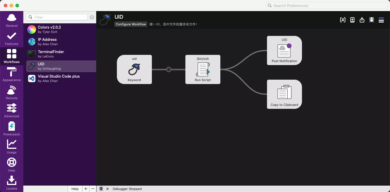 如果没有选中文件的话,那么会把唯一ID复制到剪贴板上,如果选中了文件则会重命名文件。两种情况都会把唯一ID给出结果通知。