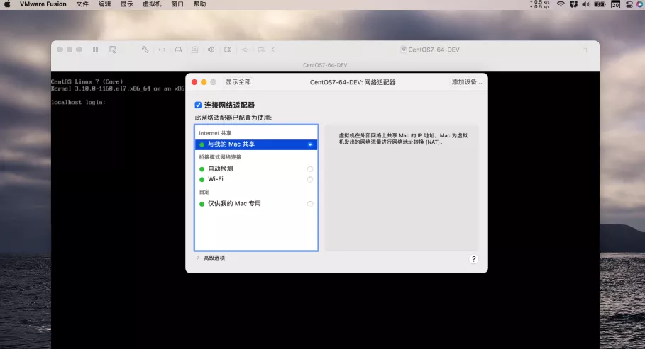 Mac 下使用 VMware Fusion ,安装 Centos7,并且配置静态 IP 上网。