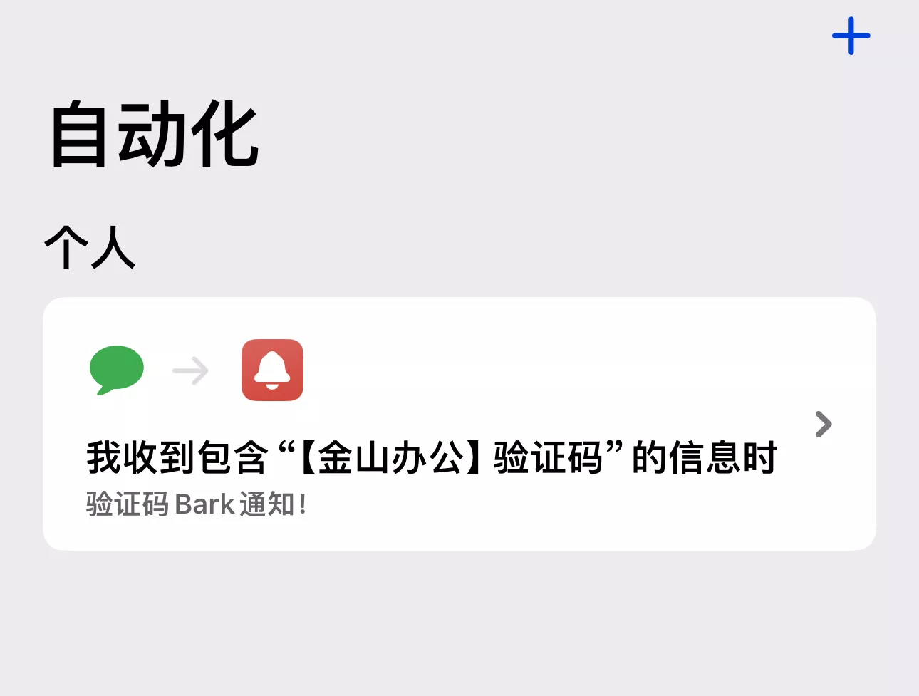 有了快捷指令后,再新建一个自动化,当收到优酷验证码短信、或者其他的如 WPS、任何你想要的内容都行。调用上述快捷指令推送通知即可。